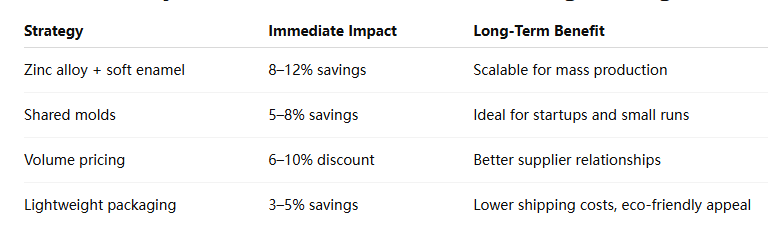 š¹ Short-Term: Switch to zinc alloy and soft enamel for quick savings.